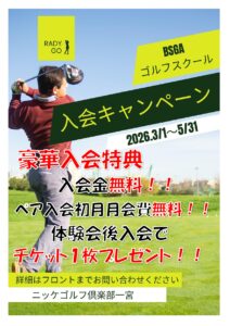 ニッケゴルフ倶楽部一宮センターでは、下記期間中にご入会いただいたお客様を対象に、